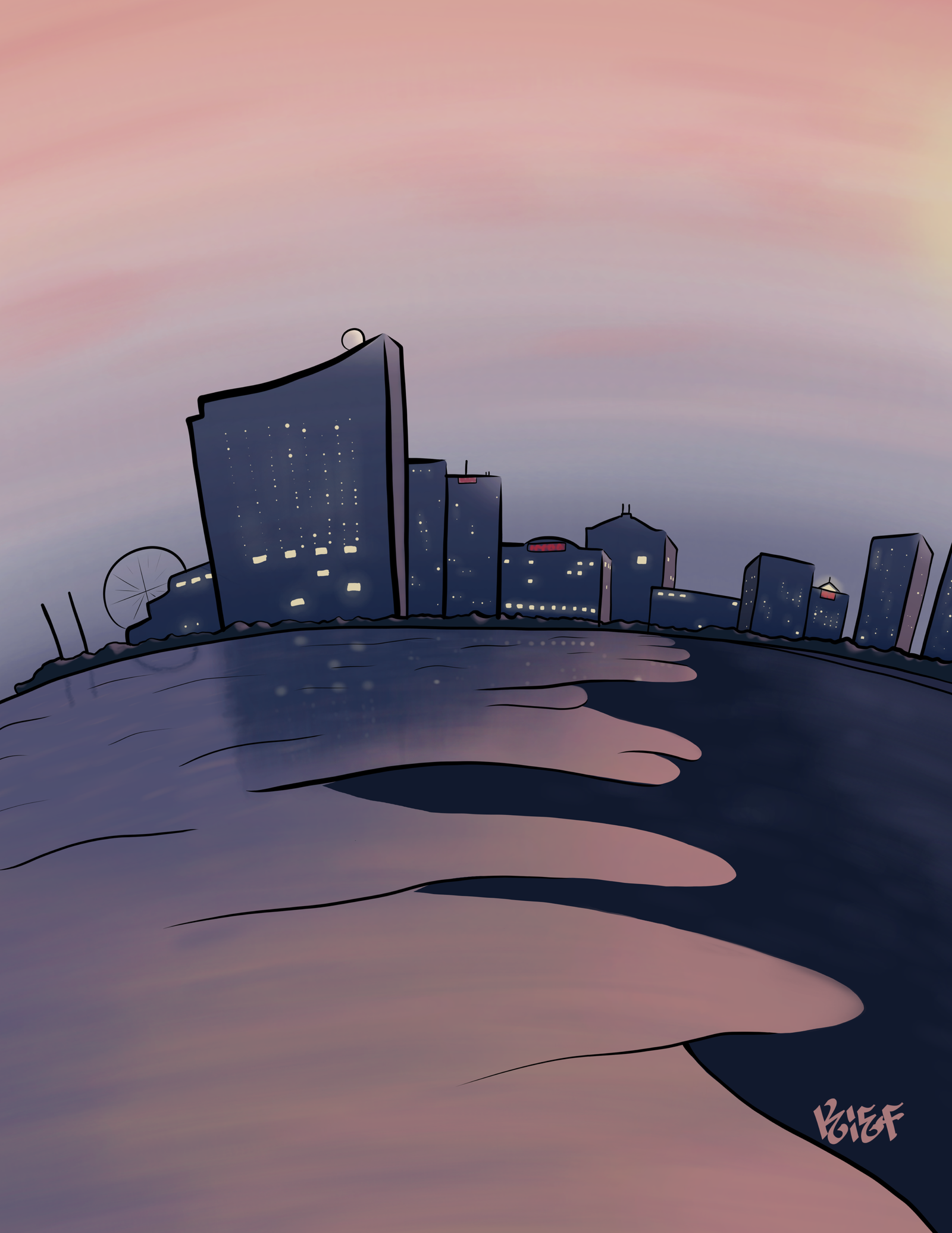 An art print of the Atlantic City skyline.